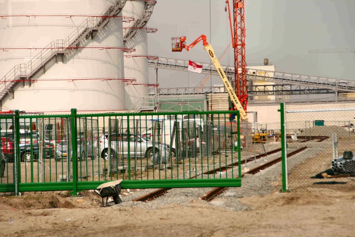 Meer dan infra is er nog niet te zien bij Abengoa. De grote bio-ethanolfabriek zal in de loop van 2010 zijn (spoor)poorten openen. |