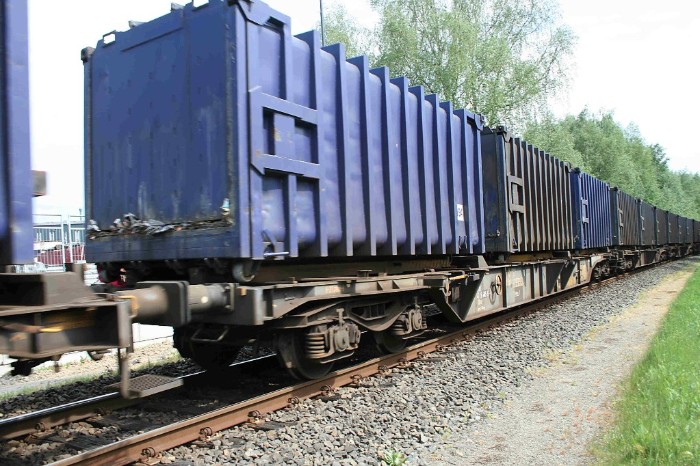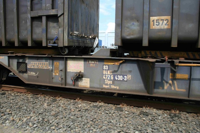 De trein bestaat 10 wagens type Slps met in totaal 28 ACTS-containers. |