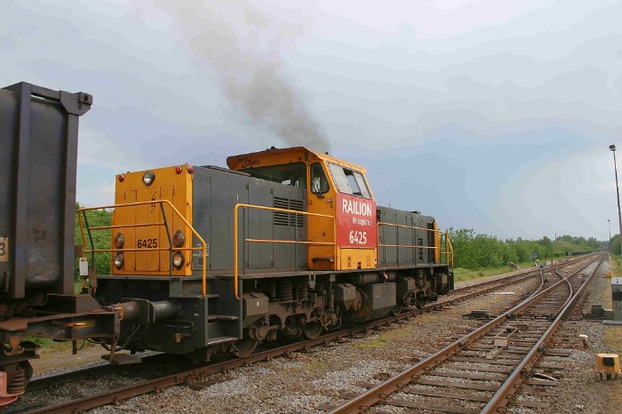De loc loopt om, moet geruime tijd wachten op de passage van twee andere treinen (Euregio en de R4C-trein naar Dormagen (zie: DSM-treinen)) en trekt na ontgrendeling van drie wissels op tot voorbij de overweg. |