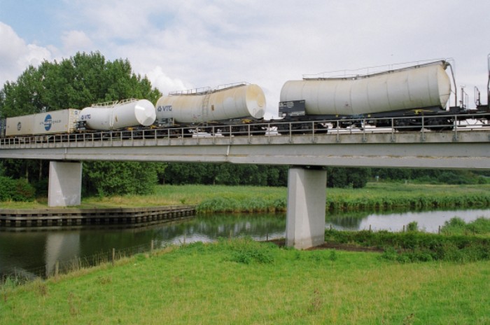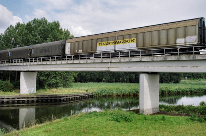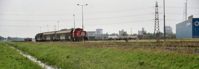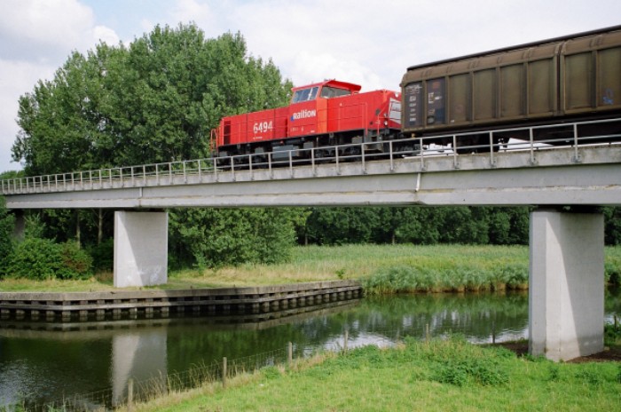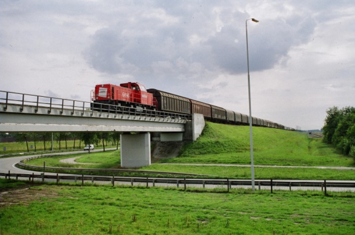 Om 17:30 passert de afvoertrein 55009 de brug over de Rode Vaart in de richting van Lage Zwaluwe. Hij bestaat uit: * loc Railion 6494 * van Wuppermann: 3 schuifwandwagens + 8 huifwagens * van CCT: 6 schuifwandwagens + 5 containerwagens * van Omya: 4 krijtwagens + 3 andere ketelwagens * van GCA: 5 ketelwagens |