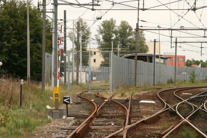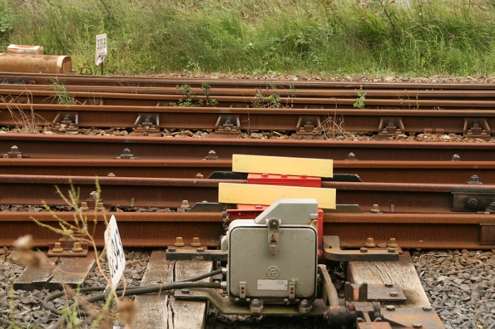 Bijzonder aan deze aansluiting zijn de spoorboom over het spoor en het dubbele stop/ontspoorblok. Dat moet samen toch een onberispelijke beveiliging hebben opgeleverd. |