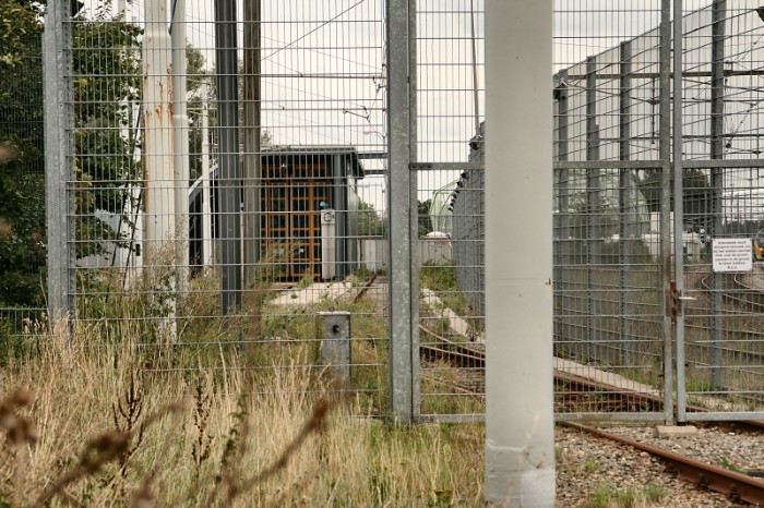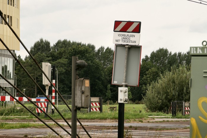 Het spoorgedeelte waarop de trams met een Unimog gerangeerd werden is begrensd. |