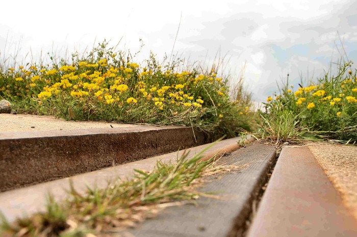 | 200709 Hij loopt wel door een onafzienbare vlakte, dat dan weer wel. Vóór de tot nu toe enige aansluiting ligt een omloopspoor. |