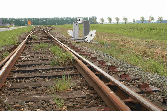 | 200709 Vanaf emplacement Axel loopt een kilometers lange stamlijn de Axelse Vlakte in. Of hij vaak gebruikt wordt? |