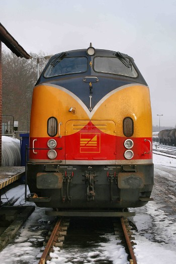 | 18/02/10 Loc D20, van oorsprong een V220.1-loc, die sinds 2008 in het bezit van de BE gekomen is, staat bij de oude goederenloods in de etalage. |
