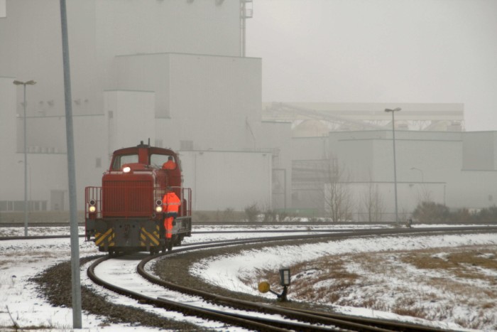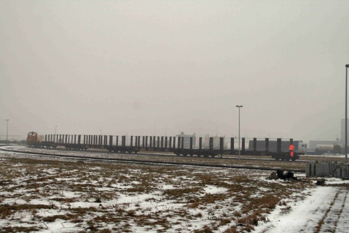 | Met de uc-trein uit Bentheim worden vandaag viif rongenwagens meegevoerd, die direct na aankomst (10:00 uur) naar de losplaats gereden worden tot tegen de beladen wagen. |