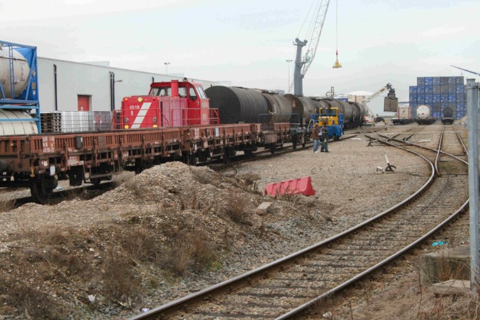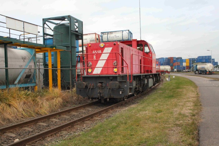 11:50 Loc 6518 verlaat na de koffiepauze in zijn eentje het emplacement van de terminal. |