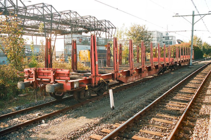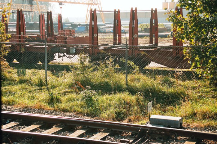 23/10/2007 Tien lege rongenwagens wachten op vertrek bij Conline Buizen in Maassluis. |