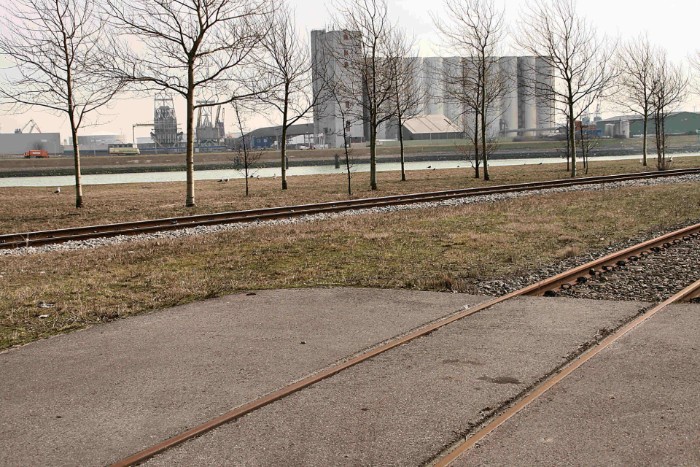 17/03/2010 Het linker spoor eindigt in een kopspoortje met een soort van losplaats. Aan de overzijde van de Dintelhaven liggen de silo's van EBS.