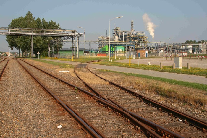 | 14/08/2010 Delamine heeft een driehoeksaansluiting. Dit is de westelijke poot (en poort) aan de oostzijde van het Akzo-emplacement, |