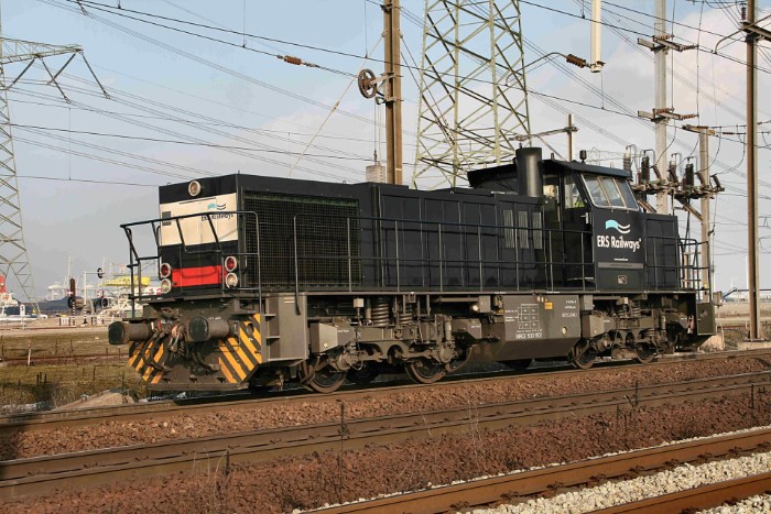 15/02/10 De statig zwarte 500-1601 (ERS 1203) van ERS verschijnt om 14:40 als losse loc ten tonele.