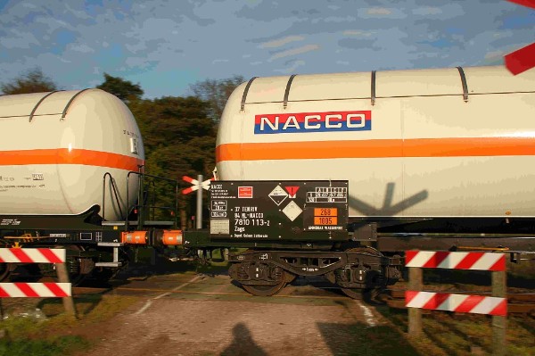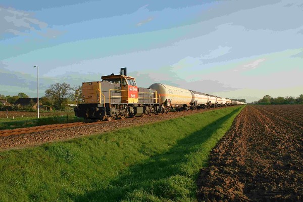 28/04/2008 Dezelfde trein 45737 twee weken eerder maar nu ter hoogte van Reuver, dit keer met bijna uitsluitend witte Nacco-ketelwagens.