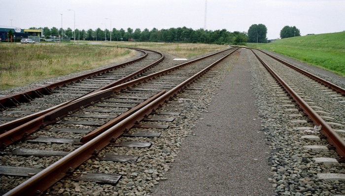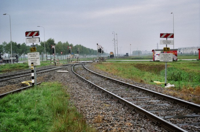 Van boven naar beneden: 18/10/2006: * in de verte het basisemplacement; aftakking van lijn naar emplacement van de hoofdlijn naar Lage Zwaluwe (foto westwaarts) 16/08/2006: * rechts hoofdlijn naar Lage Zwaluwe, links spoor van basisemplacement naar emplacement Roode Vaart (foto oostwaarts). * emplacement Roode Vaart in westelijke richting. * idem in oostelijke richtng, met aftakking naar Boer (niet in gebruik). 18/10/2006: * rechts het deels bezette emplacement de Roode Vaart, links de hoofdlijn van Lage Zwaluwe naar het basisemplacement. |