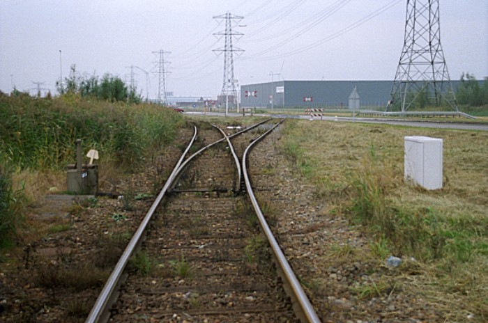 * Het raccordement Orionweg splitst zich in twee takken: rechts naar Omya en links naar o.a. GCA.