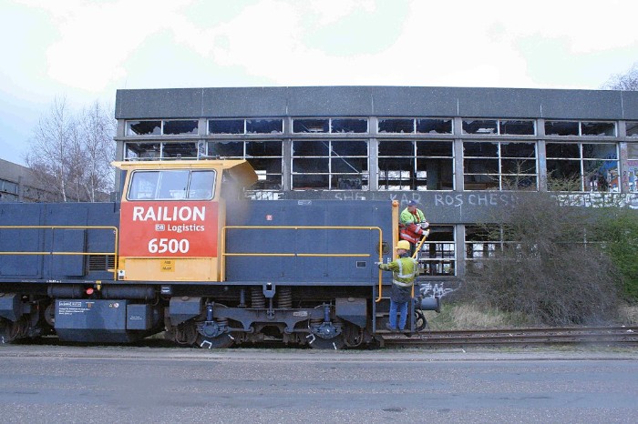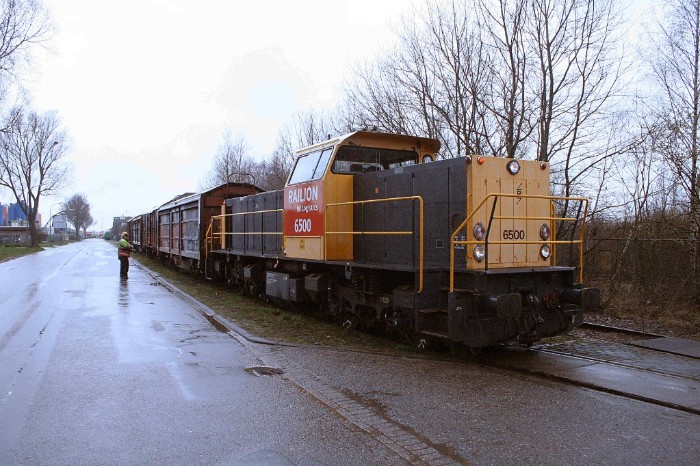 20 maart 2008 Op 20 maart staan er vier wagens voor de deur van Gebotex cie worden weggerangeerd door loc 6500 naar het omloopspoor aan het begin van Kilkade om de weg naar BAM vrij te maken. |