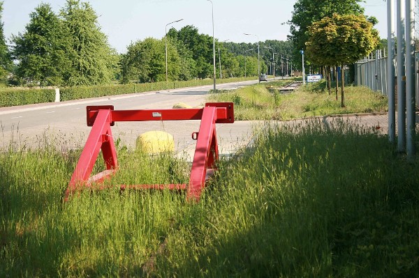 14/05/2008 Beatrixhaven Maastricht. Het einde van de oostelijke stamlijn aan de Klipperweg. Buiten gebruik, dat moge duidelijk zijn. Halverwege de Klipperweg is een stalen stootjuk op de rails geplaatst, vandaar.