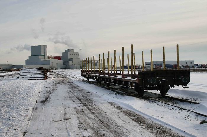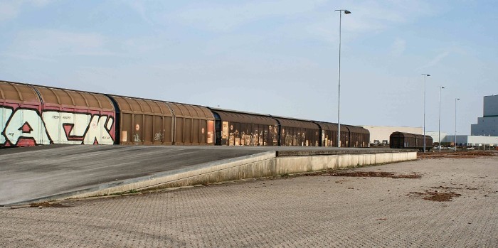 | 10/04/09 Naast het lossen van briketten is de losplaats voor verschillende doeleinden in gebruik. Op deze dag voor het stallen van ledig materieel. |