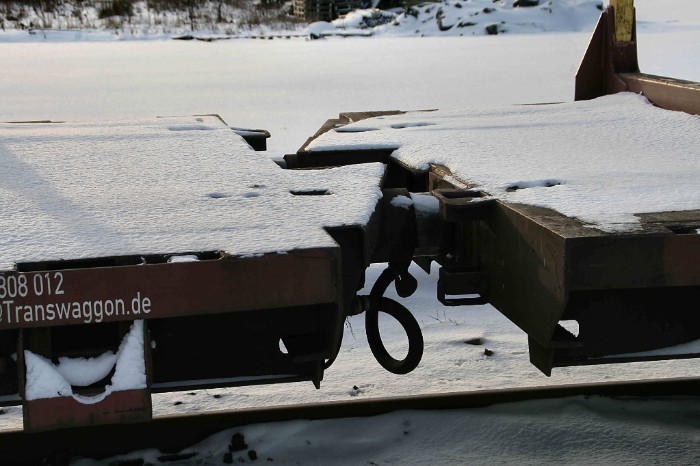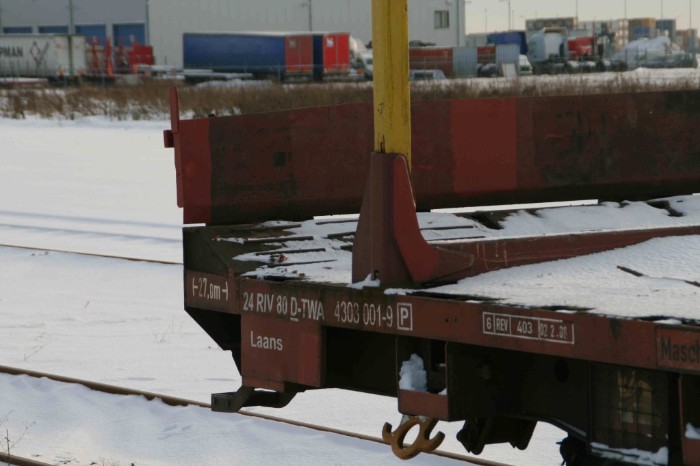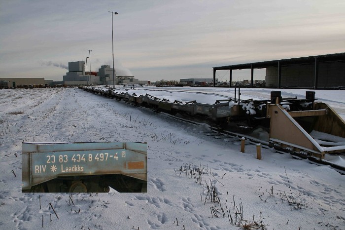 | 23/12/09 Twee dagen later is de wagen geladen. Hij zal in de middag door de BE worden weggesleept. Op de achtergrond staan de reeds geloste brikettenwagens. |