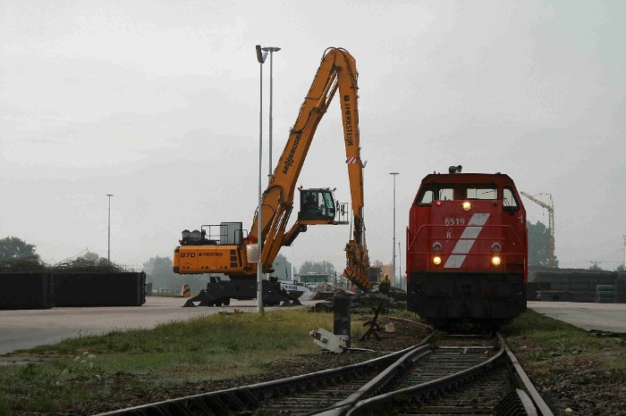 De bundels worden gelost door een mobiele kraan met elektromagneten. Het gaat om wagens van het type Rs684 van de DB en er is zelfs een open wagen gebruikt.