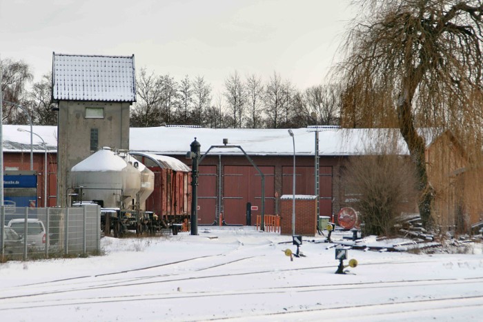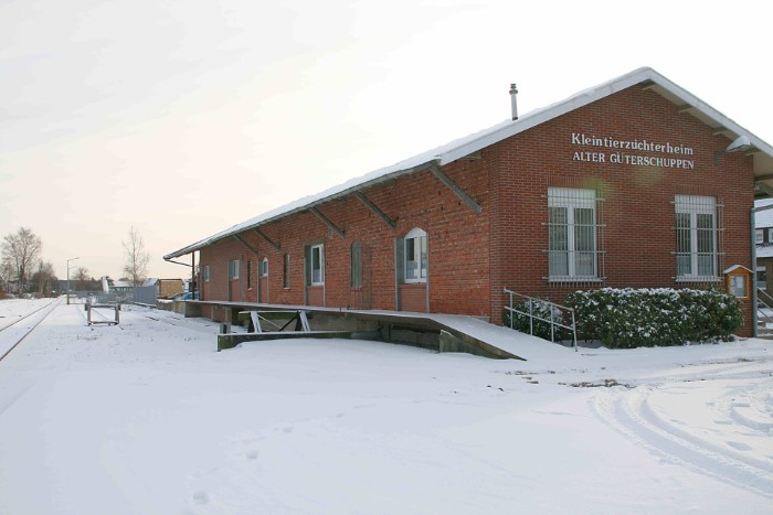 | Foto richting Bentheim. De goederenloods (Güterschuppen) is in originele staat gebleven. |