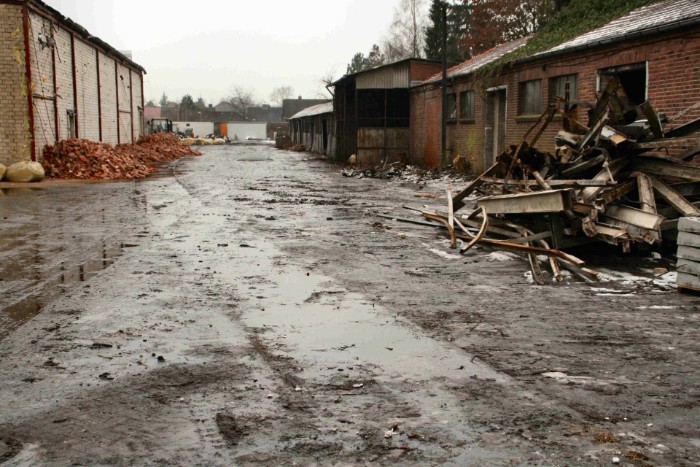 | 18/02/10 Voor de opmerkzame kijker is tussen de puinhopen nog net de loop van het bedrijfsspoor te ontwaren. |
