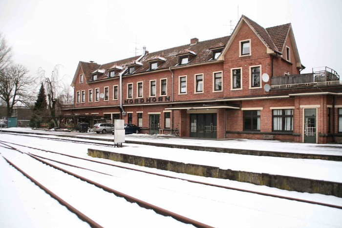 | 23/12/09 Het stationsgebouw van Nordhord is imposant, maar als station niet meer in gebruik. |