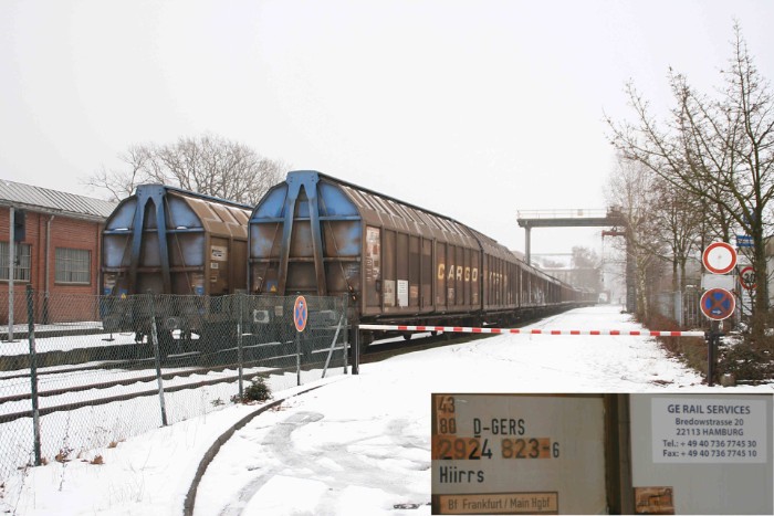 | Het containerspoor staat vol gesloten wagens type Hiirrs van GE Rail Services. Wat wordt hier vervoerd? |