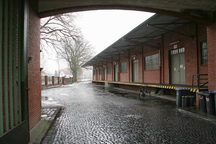 18/02/10 Boven: Als je de kliko's wegdenkt is dit zomaar een beeld uit de jaren '50. Het is de goederenloods aan het station waar tot ver in de jaren'90 nog uitgebreid stukgoederenvervoer plaats had. Onder: de spoorzijde van deze tweesporige loods. |