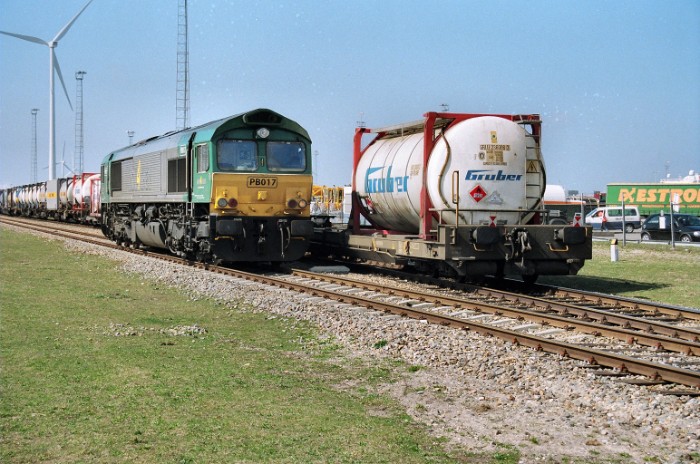 Daarna wordt de trein langzaam het kopspoor van P&O (dat is 2005 verlengd is waardoor het hele treinen kan ontvangen) opgedrukt door de PB017 van R4C. |