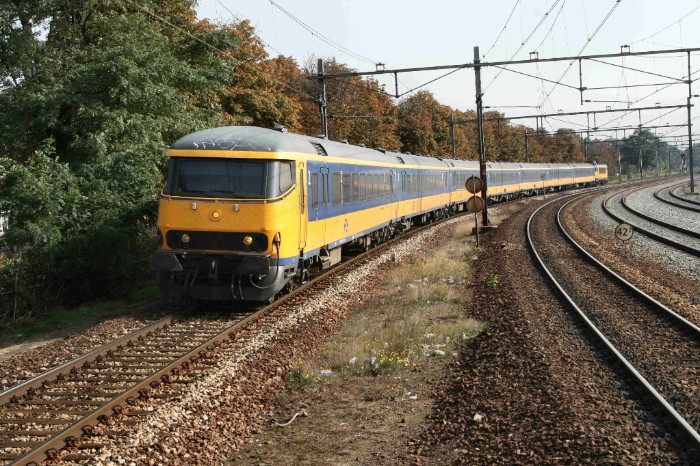 13/10/2008 De IC serie 3600 (Arnhem - Roosendaal) doet tweemaal per uur Oss aan met getrokken materieel: een stuurstandrijtuig, 6 ICR-rijtuigen en een 1700-loc. (in december zal deze treinserie weer als vanouds van Roosendaal naar Zwolle rijden) |