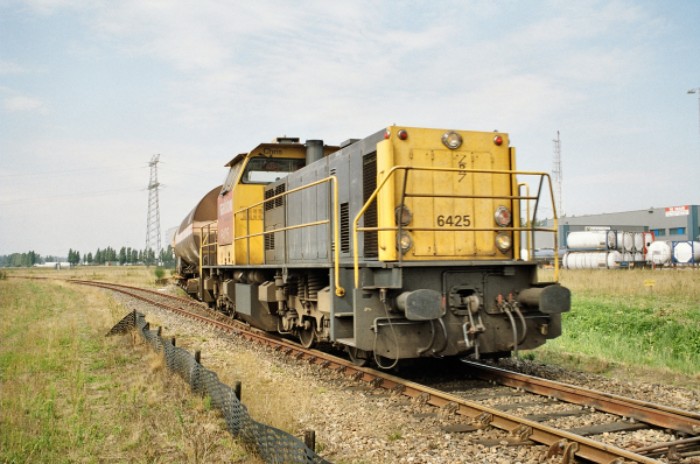 16/08/2006 13:00: Railion 6425 geduwd op weg naar Shell met 8 ketelwagens.