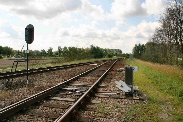 | 20/07/09 De splitsing en het wissel voor het passeerspoor, gezien in de richting van Sas van Gent. |