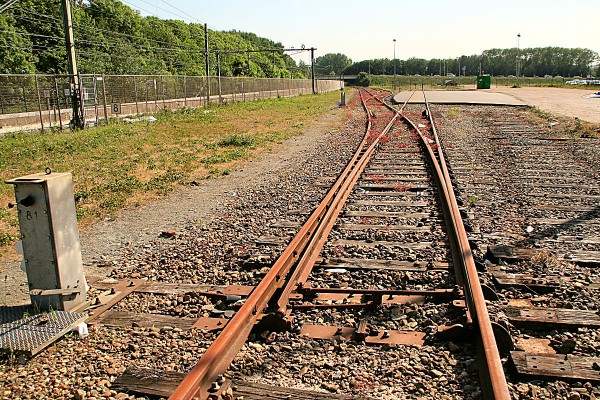 18/10/2010 Even voor de overweg wordt hij enkelsporig. In 1987 is de lijn tot met Emplacement Centraal van Tata geëlektrificeerd, zodat de 1600's en tegenwoordig te 189's waarmee meestal gereden wordt een trein na kopmaken direct bij het hoogovensbedrijf kunnen afleveren. |