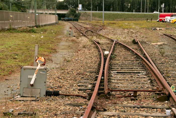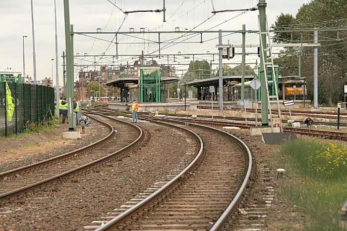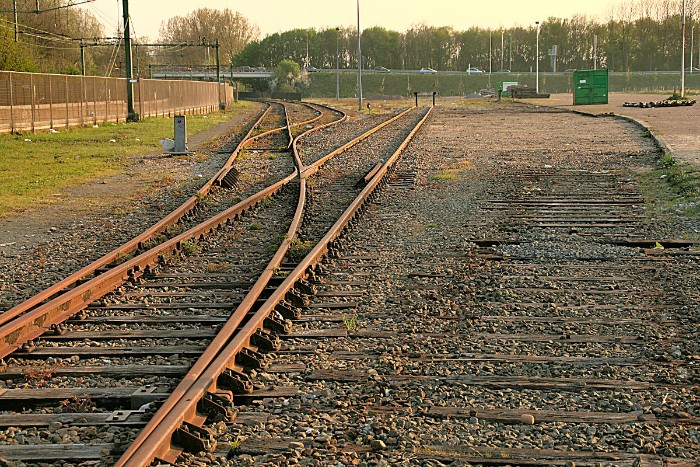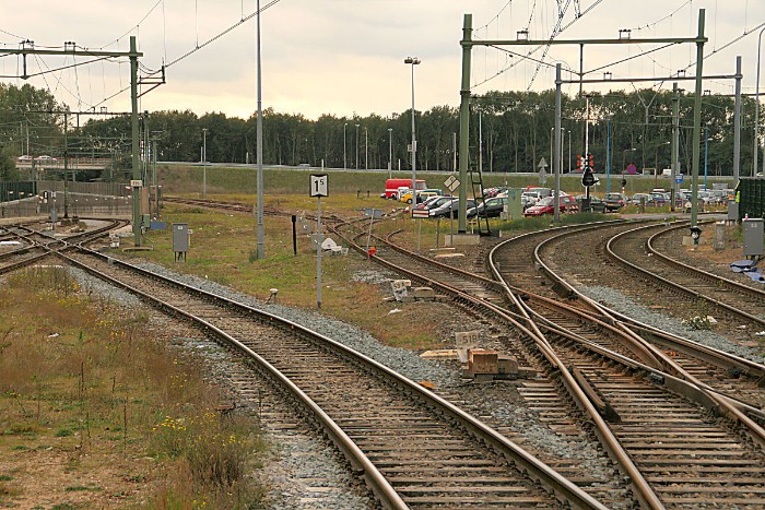 18/10/2010 De twee meest linkse sporen liggen aan de rand van de afdaling naar de Velsertunnel. Twee luxe trapwissels versieren de vergane glorie. |