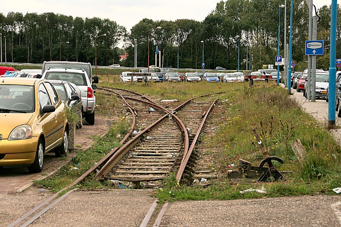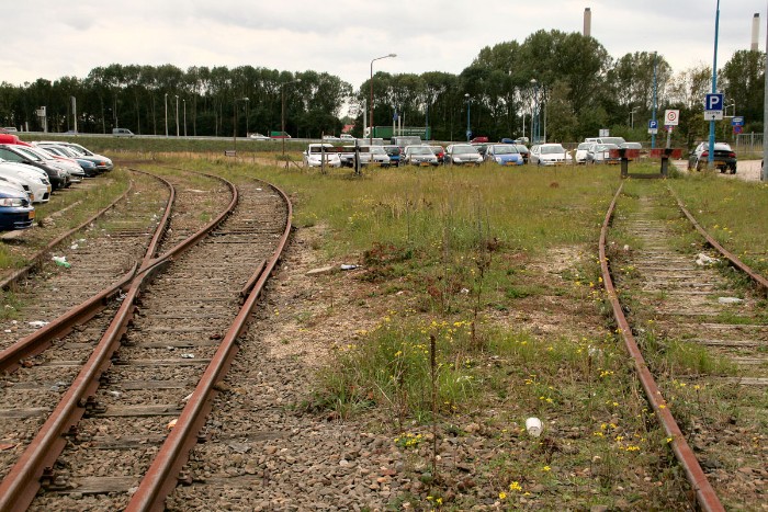 18/10/2010 Een blik op het in onbruik geraakte en deels afgebroken emplacement, dat door geparkeerde auto's in gebruik genomen is. Rechts lag de losplaats, midden en links bevonden zich een negental opstel(kop)sporen. |