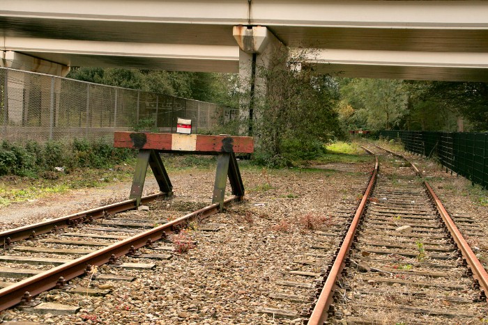 18/10/2012 Een spoor loopt door tot onder de autoweg en eindigt ter hoogte van de tunnelingang |