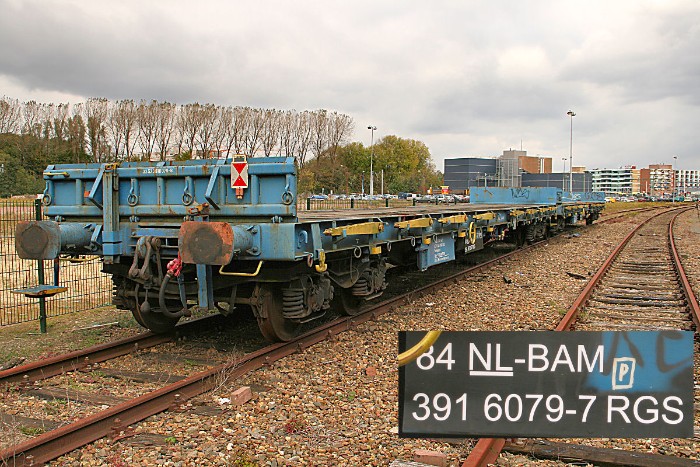 18/10/2010 Twee platte wagens van BAM zijn waarschijnlijk de laatste geweest die van de oude sporensituatie gebruik gemaakt hebben. |