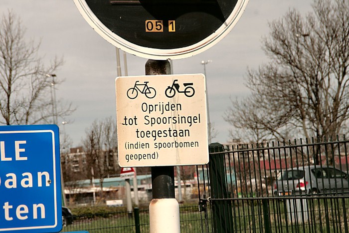 06/04/2012 Voor de overweg nabij genoemd stootjuk hangt wel een heel bizar opschrift. |