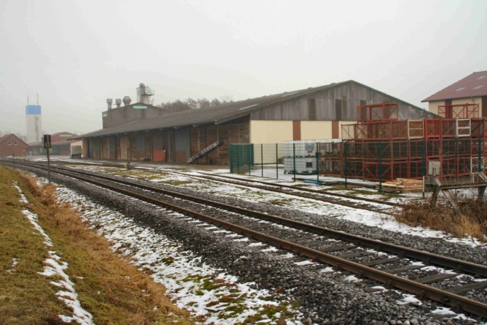 | 18/02/10 Zelfs deze goederenloods wordt getuige het gigil van varkens en de veewagen aan de koplading nog intensief gebruikt, alleen niet door de trein. |