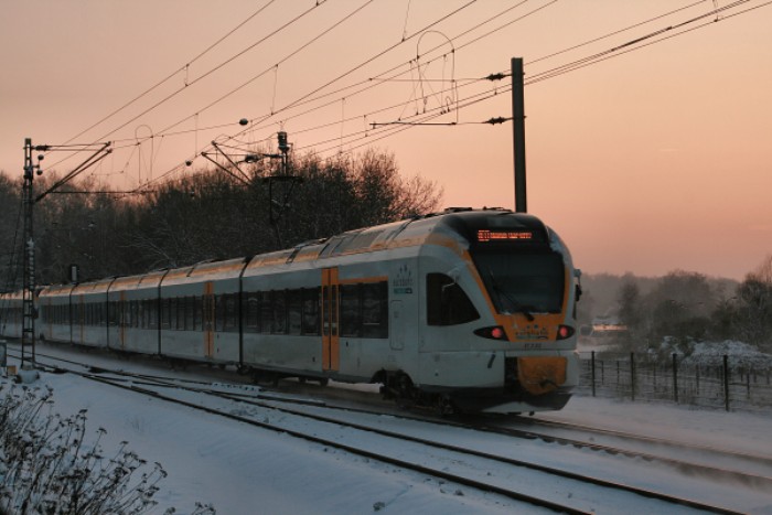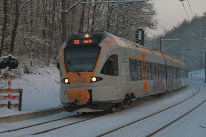 20/12/2010 In de bosrijke omgeving tussen Kaldenkirchen en Venlo rijden sinds ruim een week de vijfdelige Flirt-treinstellen van Eurobahn. |