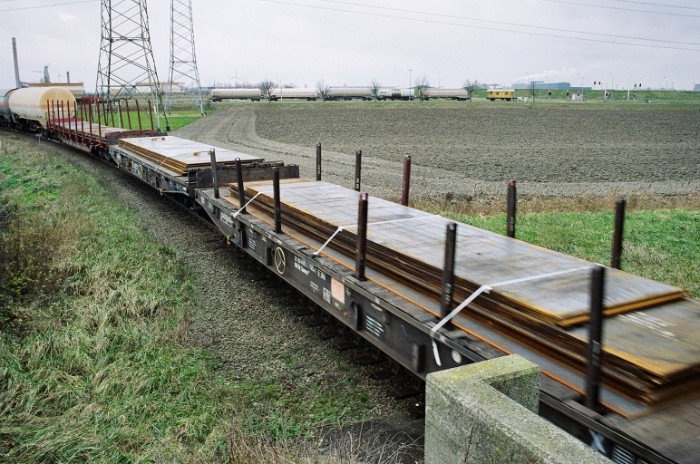 ...drie platte wagens met staalplaten van de Haven van Vlissingen… |