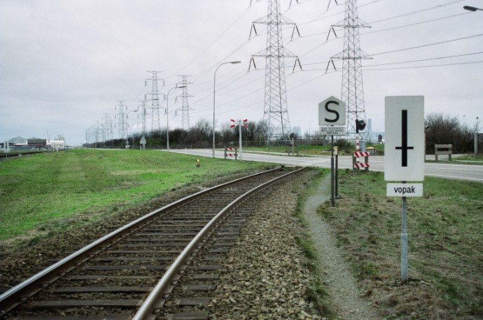 Blokbord vóór de overweg in de Frankrijkweg.