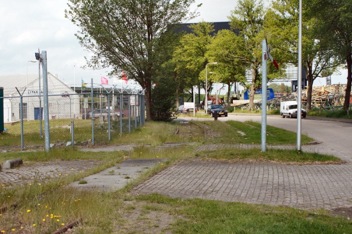 22/05/2009 Vanaf de aansluiting van de haven loopt de lijn, die al zichtbaar tijden onbereden is, parallel aan de Rieteweg. |