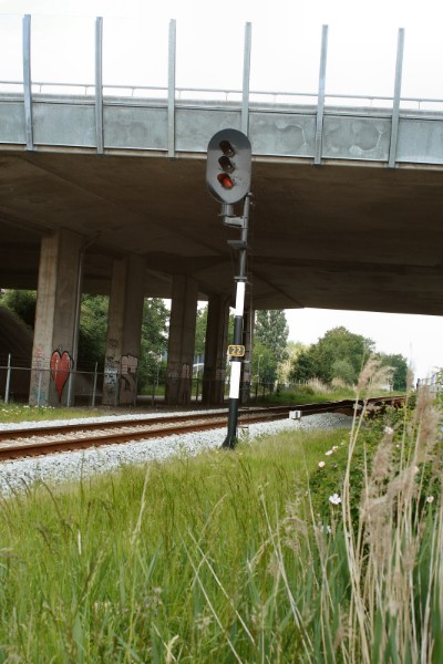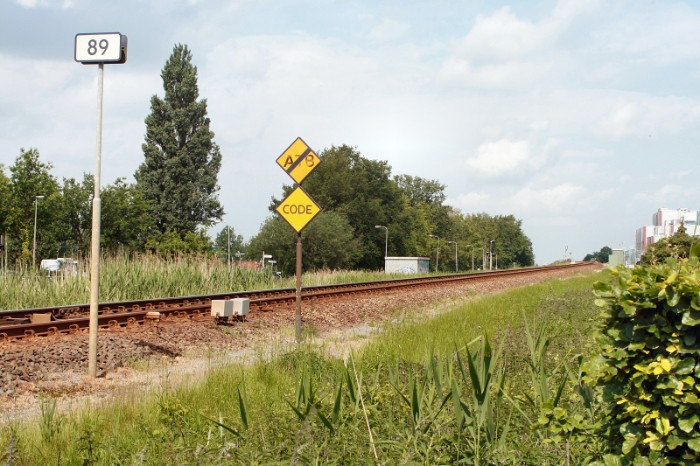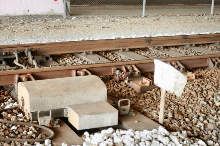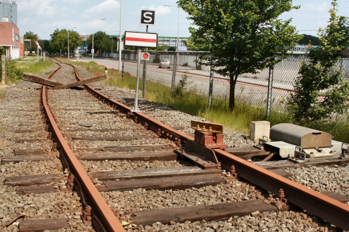 22/05/2009 De aanluiting van de stamlijn Katwolde is voorzien van een elektrisch bediend stop-/ontspoorblok. Met een tijdelijk stopbord is het bovendien afgelsoten. |