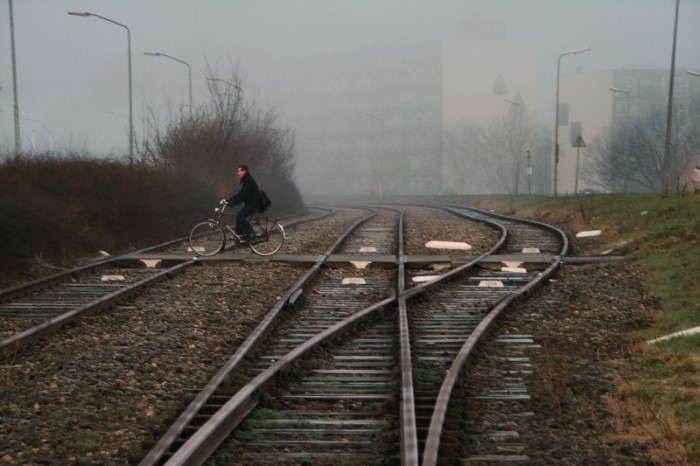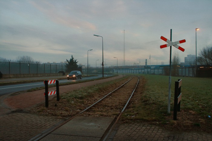 | 27/01/2011 Het raccordement Groote Lindt in Zwijndrecht is uitzonderlijk uitgestrekt. De stamlijn loopt langs de Lindtse dijk. In de verte is nog juist het hoofdspoor naar Dordrecht te zien. |