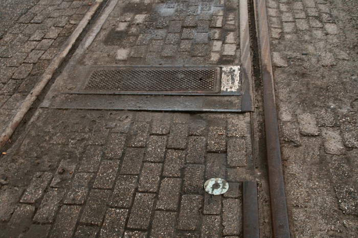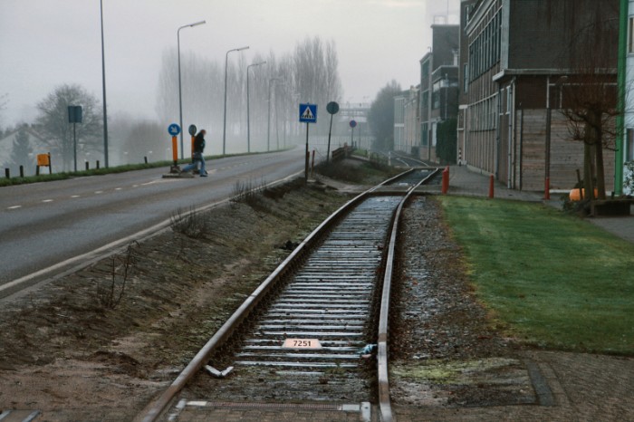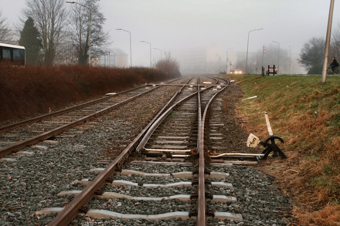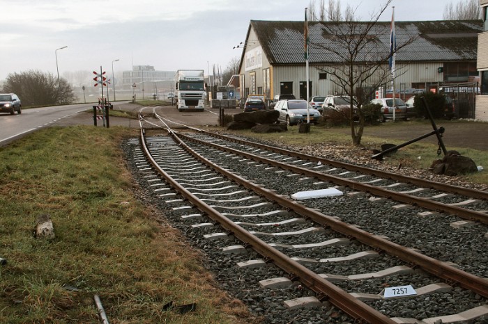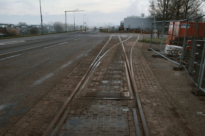 | Even verderop bevindt zich een kopspoortje met een straatspoorwissel. |