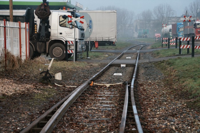| Ongeveer twee kilometer vanaf het station treffen we een driesporig emplacement aan; de wissels liggen echter geklemd; slechts één spoor is in gebruik. |